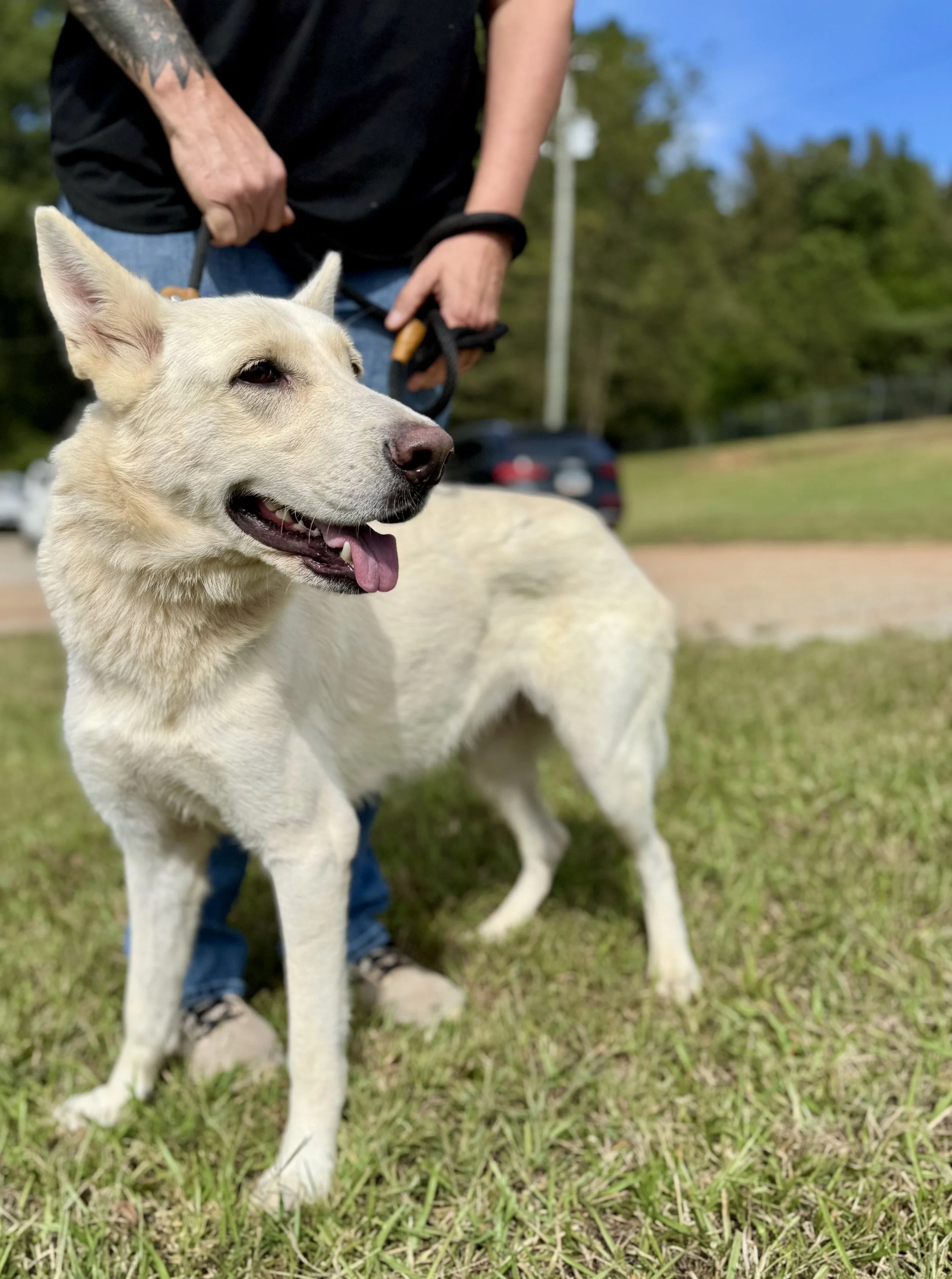Emmi Lou walks great on a leash, is 55lbs and her HEART WEIGHT is just as big!!!